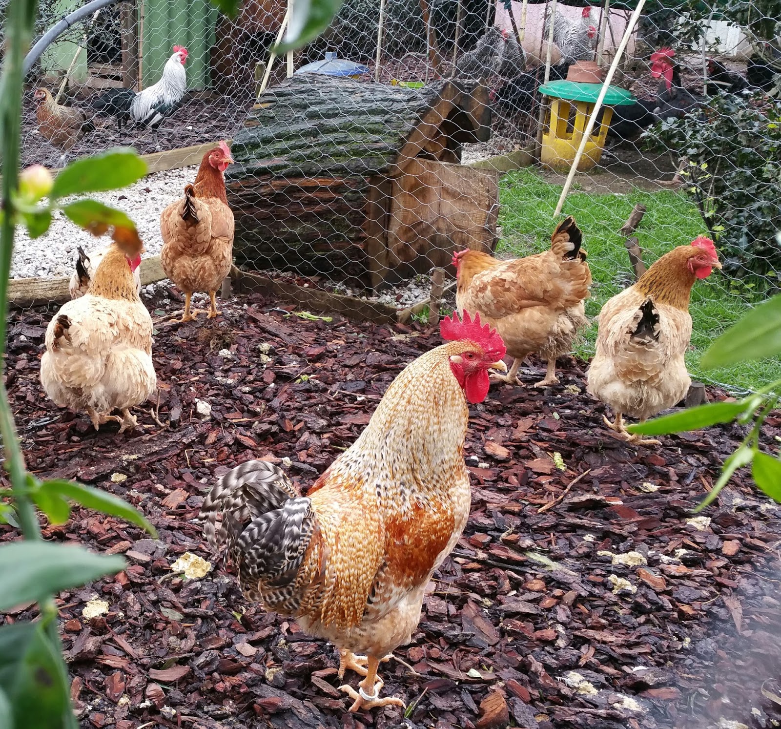 Desde canalóns rehabilitados para comedeiros ata un confortable recuncho para poñedeiro a base de troncos co seu correspondente oco, ou a pertinente escaleira de madeira que facilita o acceso á planta alta do niño si iso é mester, ou que dicir das distintas cores diferenciadores que teñen distintas estancias da explotación.